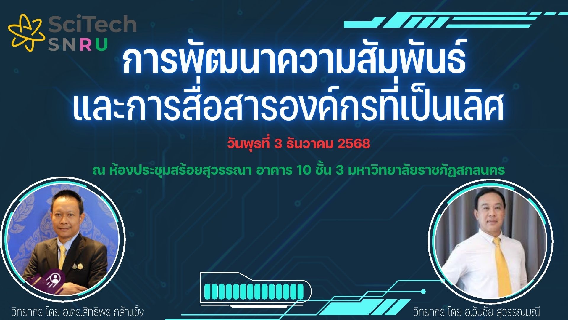 คณะวิทยาศาสตร์และเทคโนโลยี มหาวิทยาลัยราชภัฏสกลนคร จัดกิจกรรมการพัฒนาความสัมพันธ์และสื่อสารองค์กรที่เป็นเลิศ ในวันพุธที่ 3 ธันวาคม 2568 ณ ห้องประชุมสร้อยสุวรรณา อาคาร 10 ชั้น 3 มหาวิทยาลัยราชภัฏสกลนคร เผยเเพร่เมื่อ 4 ธันวาคม 25684 ธันวาคม 2025 โดย master